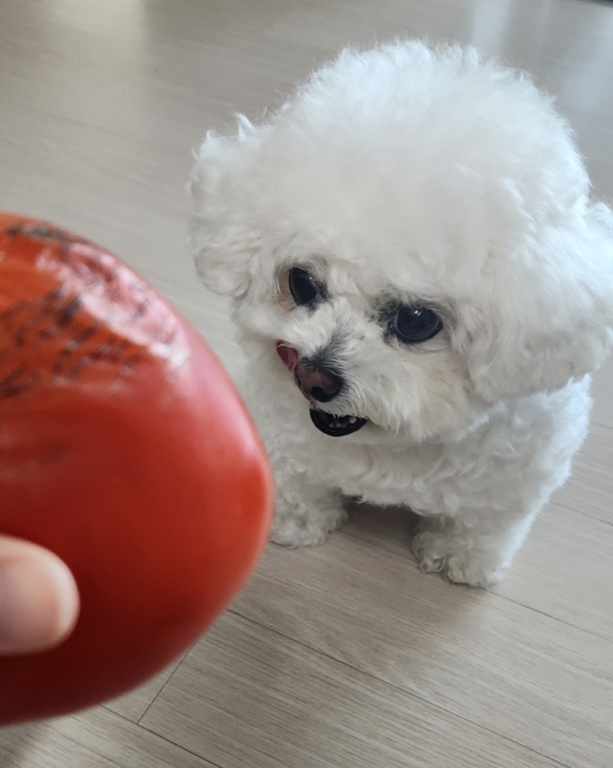 다행히 미료는 대봉에 알레르기 반응을 보이지 않았다. 그래서 티스푼으로 4스푼 정도 떠서 줬더니 눈이 휘둥그레 해지며 맛있게 먹었다. 과일을 좋아하는데 당분이 높아서 조금 걱정이다. 요즘 미료도 살이 많이 쪘는데 과일을 많이 먹어서 그런 걸로 추정 중이다. 맛있는 음식을 함께 하는 것도 좋지만 식이조절에 심혈을 기울이는 게 건강한 강아지 삶에 가장 중요한 요소인 것 같다.