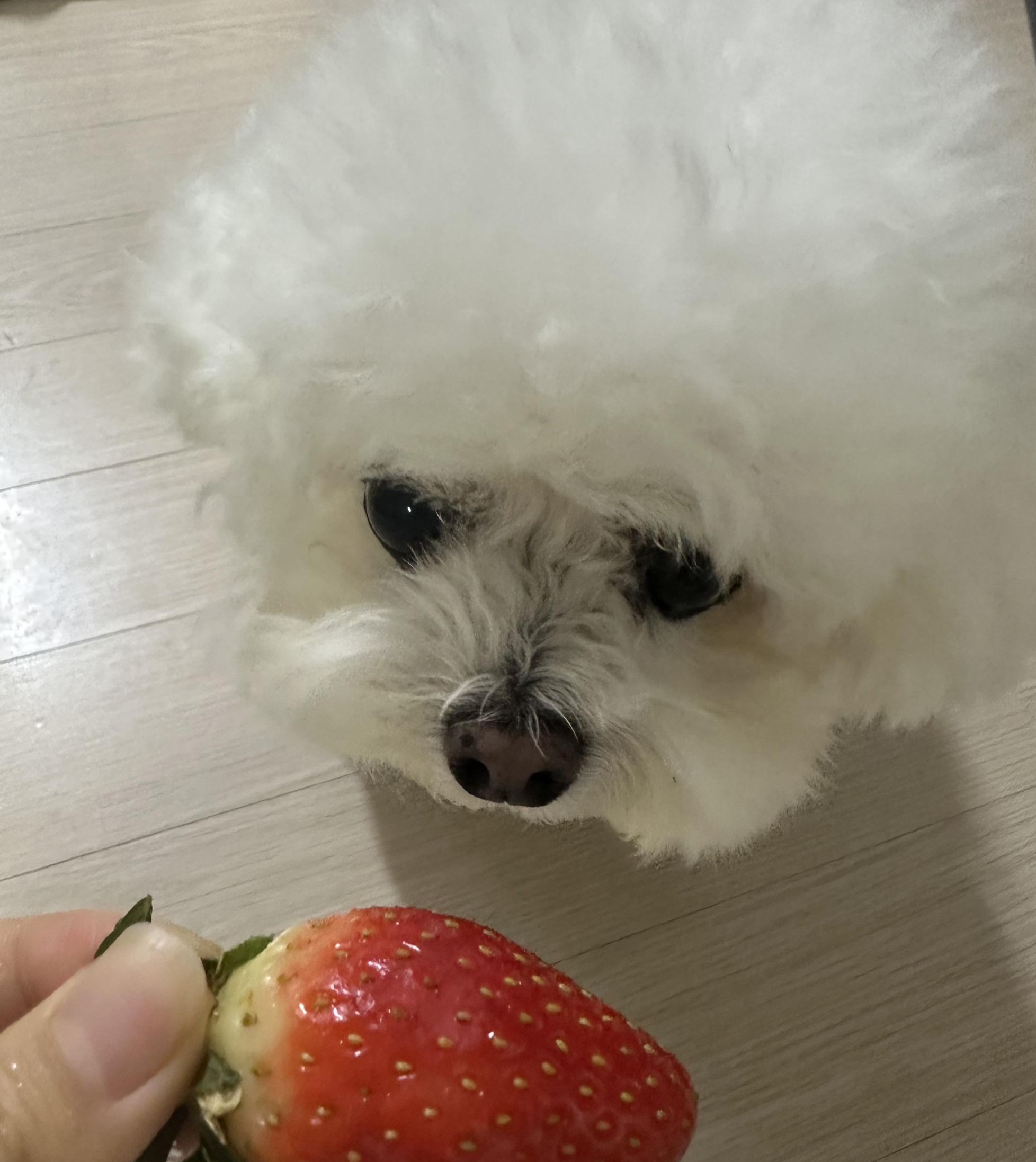딸기주스도 마찬가지입니다. 시중에 판매하는 딸기합성제품은 딸기의 향만 첨가된 경우가 많습니다. 딸기를 제외한 기타 화학 첨가물로 맛과 색을 냈기 때문에 강아지에게는 해로울 수 있습니다. 집에서 딸기로만 갈아서 만든 주스는 급여가 가능합니다. 하지만 이것도 저는 개인적으로 추천드리지 않는 방법입니다. 강아지는 과일을 과다 섭취할 경우 부작용이 많이 따르기 때문에 급여량을 조절해 주는 것이 중요합니다. 만약 주스로 갈아서 급여할 경우 그 양을 정확히 파악하기 어렵습니다. 그 상태로 섭취한다면 너무 많은 당분을 섭취할 수 있어서 건강하지 못한 방법입니다.