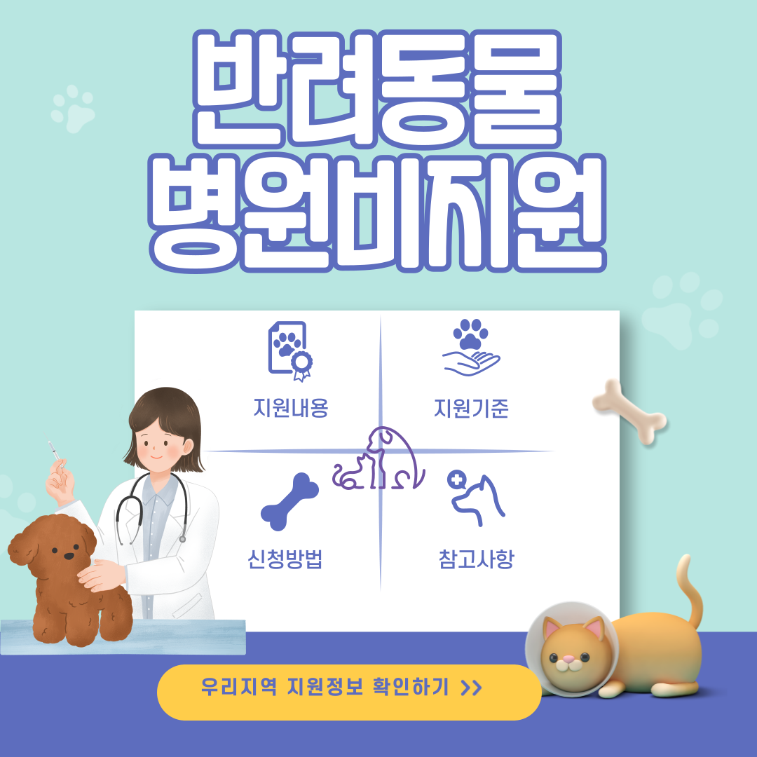 반려동물 병원비 부담을 덜고 동물복지를 위해 지자체에서 의료비를 지원하는 제도이다