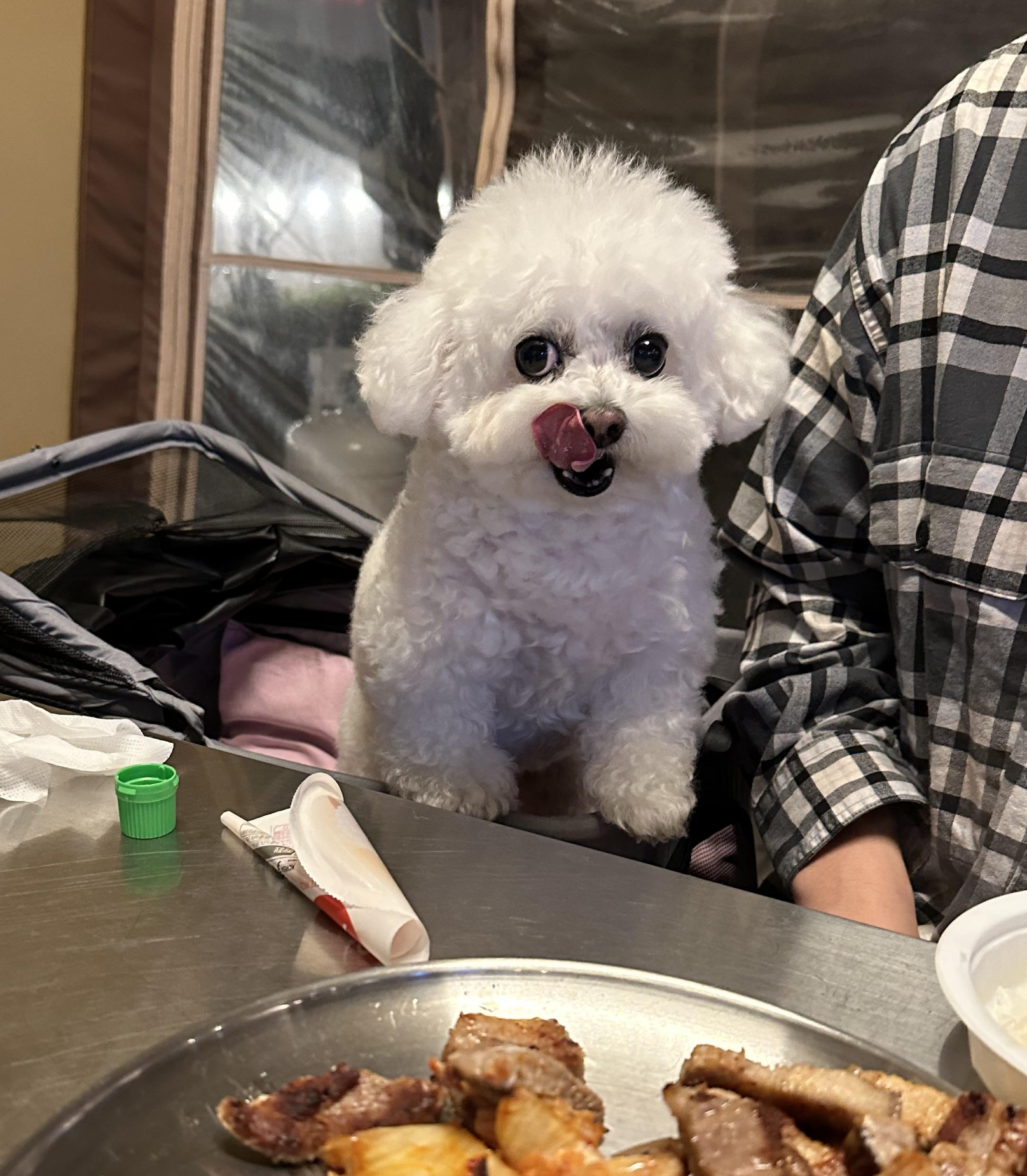 김장철이 다가오고 있다. 온 가족이 모여서 김장을 하고 나면 몸보신으로 돼지고기를 삶아서 보쌈을 해 먹는다. 우리의 강아지들은 이미 진작부터 냄새로 눈치를 채고 있을 것이다. 우리가 보쌈을 먹을 것이란 걸. 돼지고기는 우리나라사람들이 많이 먹는 고기류 중 하나이다. 보쌈뿐 아니라 삼겹살, 족발, 돼지국밥 등 다양한 형태로 돼지고기를 섭취한다. 유혹적인 냄새에 강아지들은 자린고비 하며 식탁옆에서 기다린다. 최근에 캠핑을 다녀왔는데 옆에서 미료가 입맛을 다시며 시키지도 않은 '앉아'를 하고 있었다. 빨리 고기를 달라는 것이다. 저렇게 촐망촐망한 눈빛으로 쳐다보는데 어떻게 안 줄 수 있을까. 돼지고기 강아지가 먹어도 될까? 결론만 이야기하자면 먹어도 된다! 하지만 고지방, 고단백 식품이기 때문에 몇 가지 주의사항이 필요하다. 이 글에서는 강아지 돼지고기 급여방법과 주의사항에 대해 다루려고 한다.