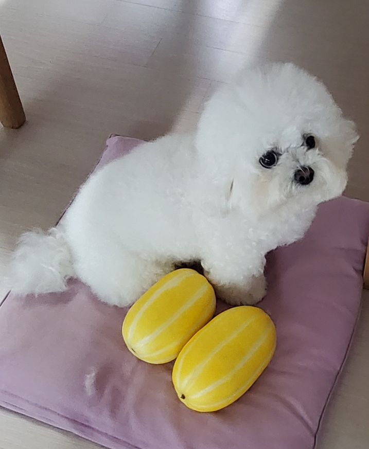 아빠가 농사 지어오신 대왕 참외를 미료가 훔쳐갔다. 미식가에다 입이 짧은 미료는 과일도 당도 높은 것만 골라서 맛있는 것만 먹는데, 참외 한 번도 먹어 본 적 없지만 자기 건 줄 기가 막히게 알아차렸나 보다. 그래서 알아봤다 강아지, 참외 먹어도 될까?