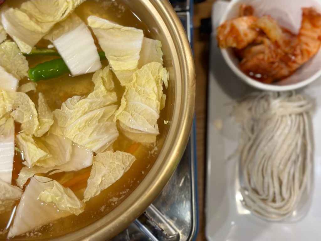 칼국수 면을 넣기 전에 배추국으로 국물만 먹어도 맛있다.