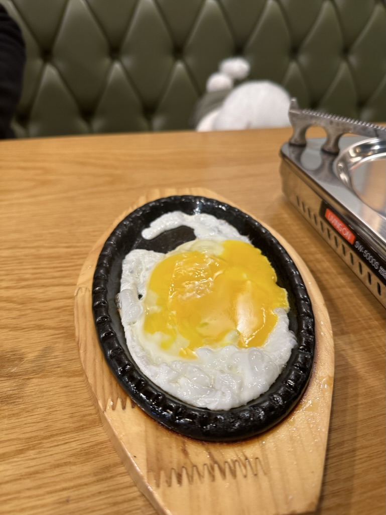 기본안주로 계란프라이와 추억의 과자 옥수수 브이콘이 나온다.