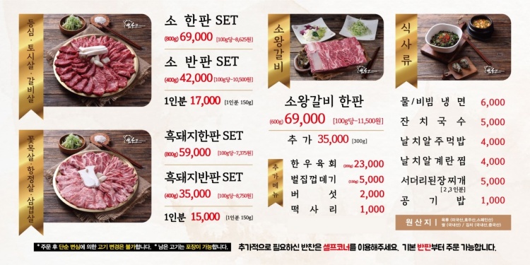 한우와 흑돼지를 아주 합리적인 가격에 먹을 수 있다