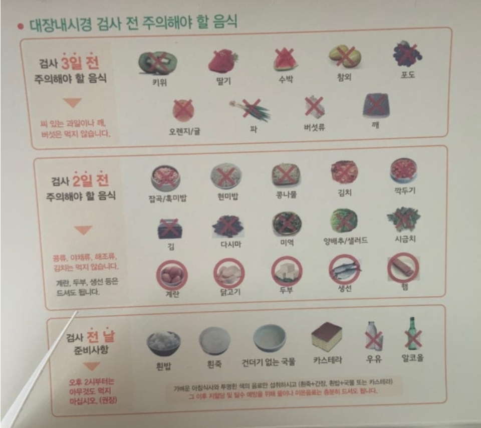 대장내시경과 위내시경과 같은 검진을 하기 위해서는 꽤나 식단 관리가 까다로웠습니다.