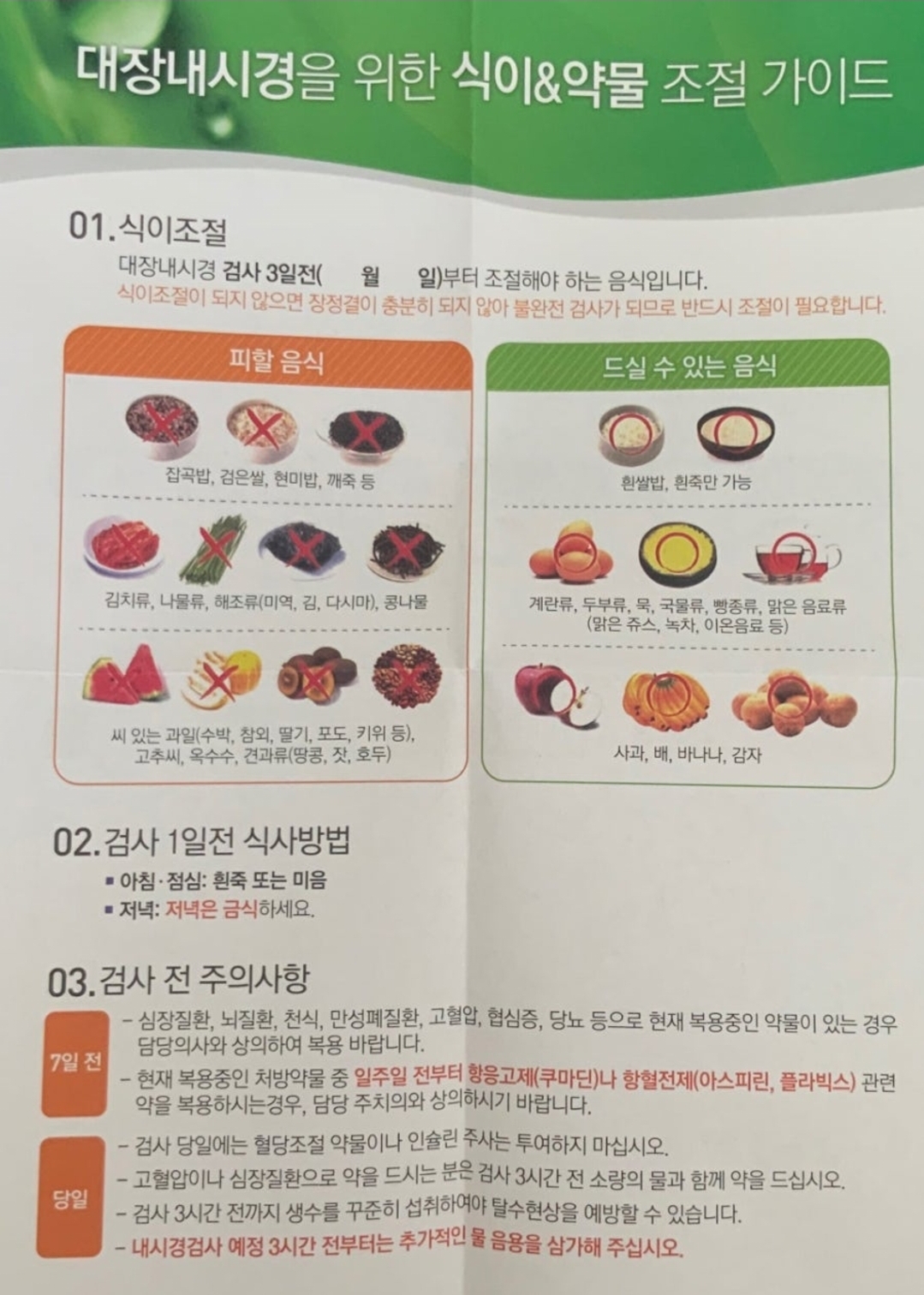 대장 내시경 1일전 식단