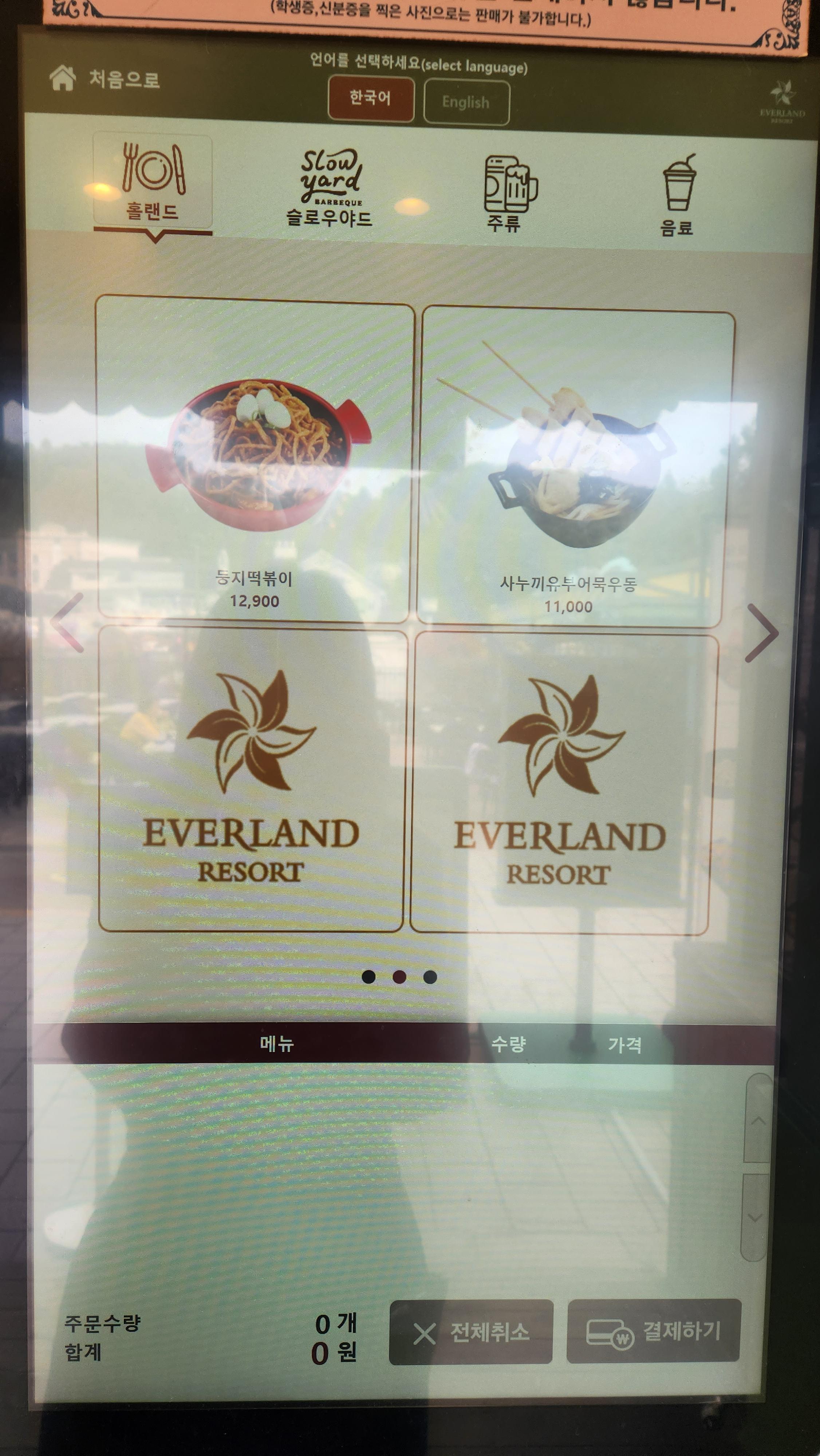 키오스크에 다양한 메뉴가 있습니다