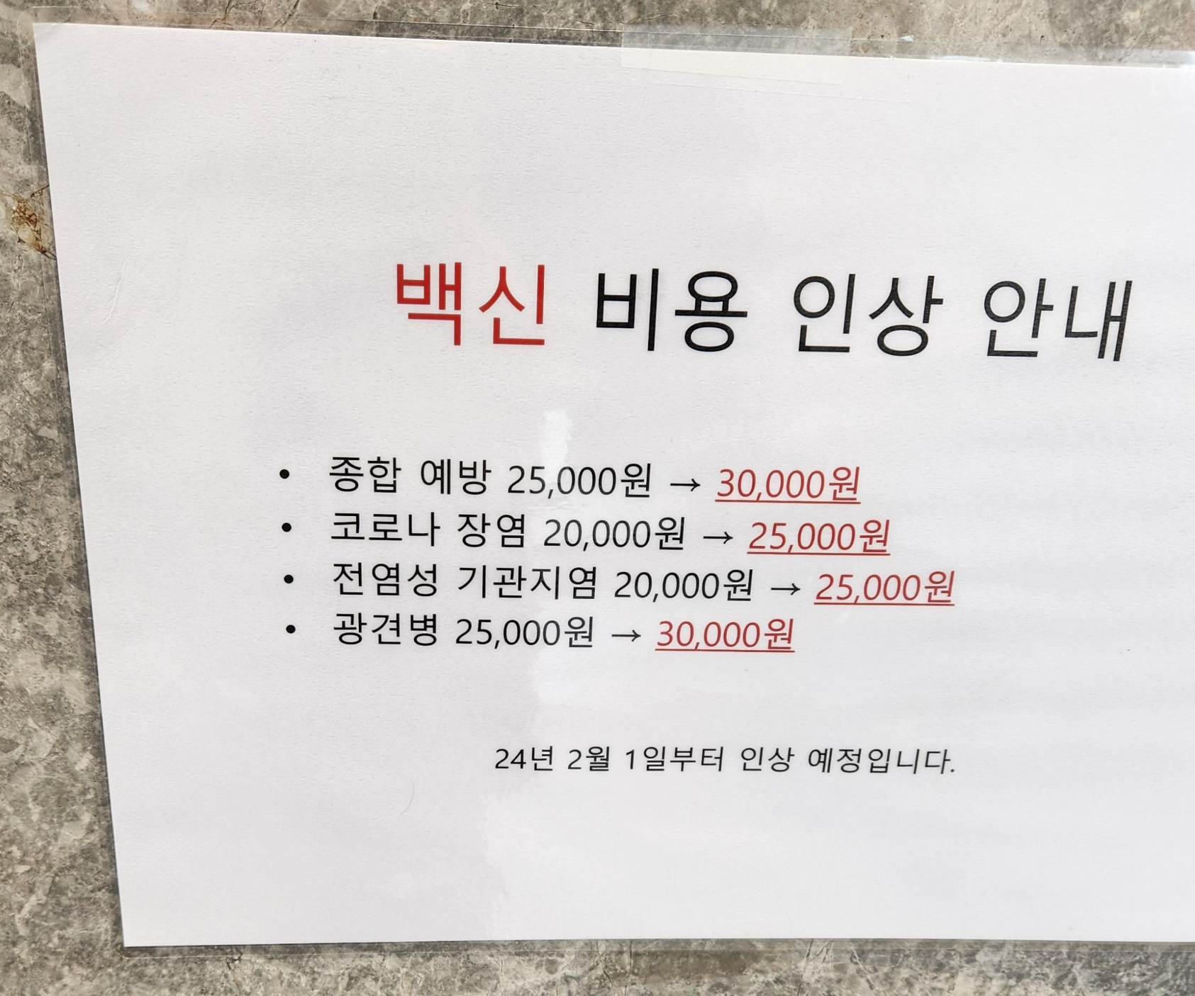 2024년 2월부터 백신 비용은 인상이 되었는데요